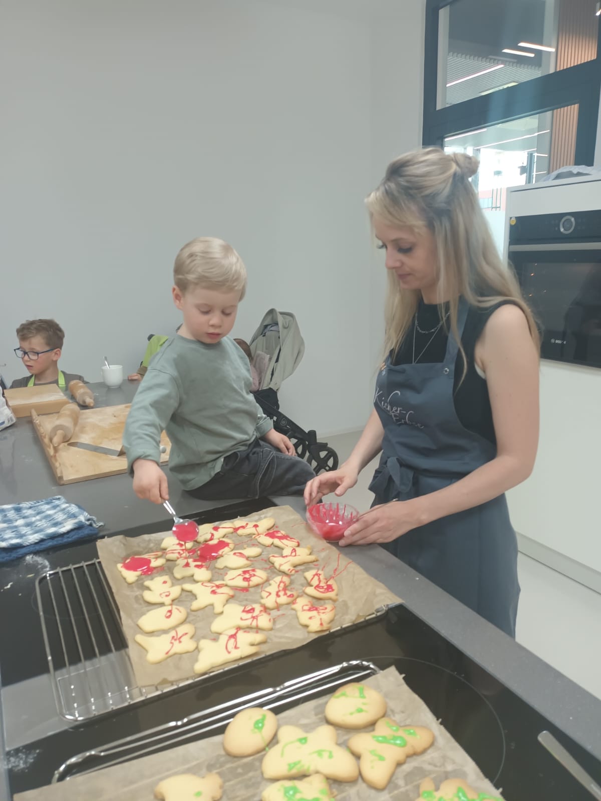 Dank der großzügigen Unterstützung der Stadtwerke Willich konnten wir in einer Großküche arbeiten – ein echtes Abenteuer für Groß und Klein! Die Eltern halfen beim Backen, Verzieren und natürlich auch beim Aufräumen, während die Kinder ganz in ihre Rollen als Mini-Bäcker aufgingen.